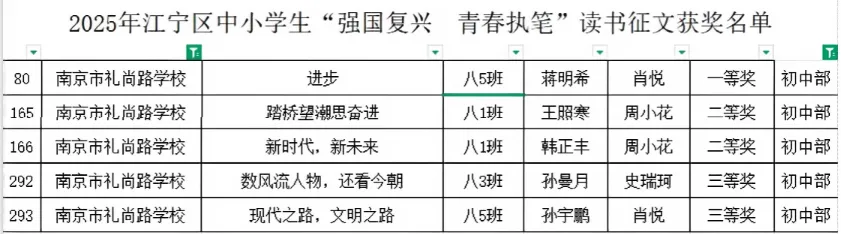 荣誉加身,步履不停;初心如磐,笃行不怠。南京市礼尚路学校全体教师将以此次荣誉为新起点,把荣光化作前行的动力,以更昂扬的姿态深耕教学、精研教研,用匠心浇灌桃李,用实干书写担当,为学校教育高质量发展续写新的华章!