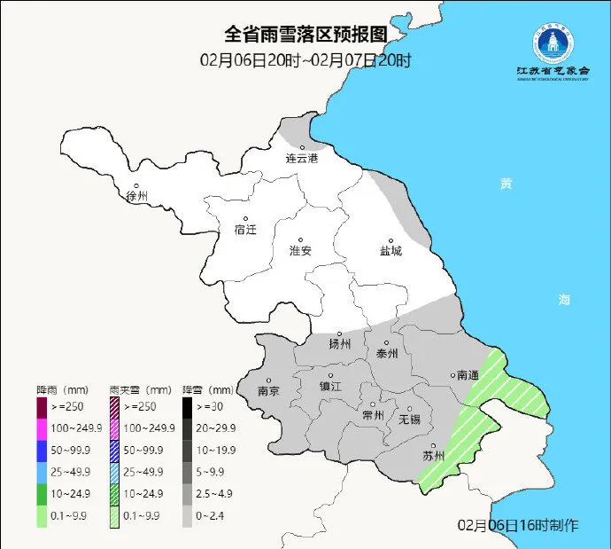今天白天,沿江和苏南地区出现小雨或雨夹雪,其他地区阴到多云。