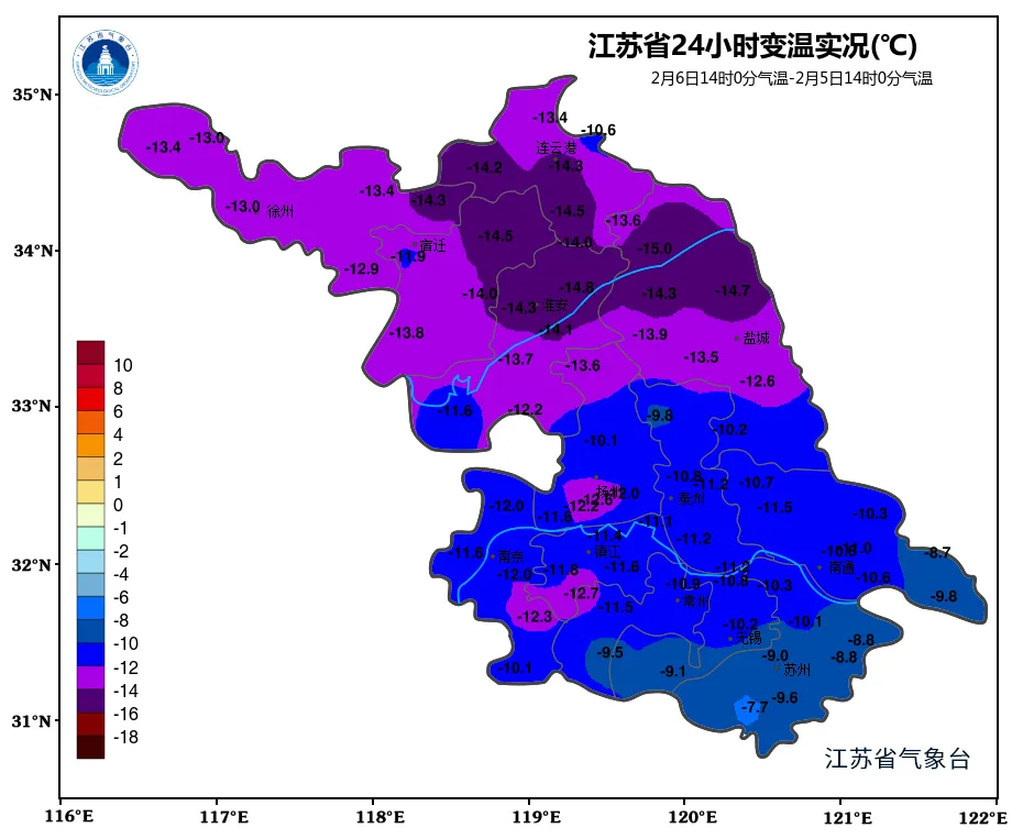 预计未来24小时南京、无锡、常州、扬州南部、镇江、泰州南部等地的部分地区将出现对交通有影响的道路结冰。省应急厅(省防减救灾办)、省气象局提醒注意防范。