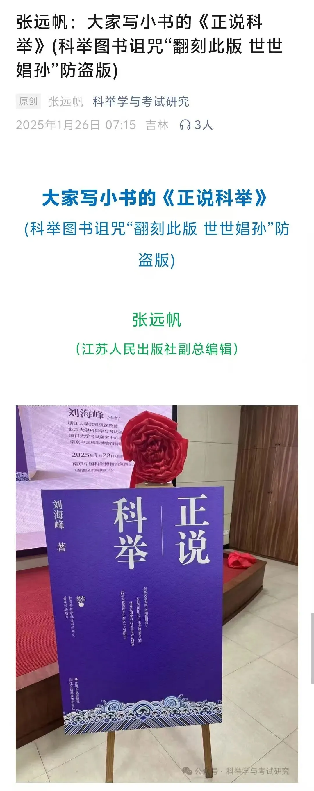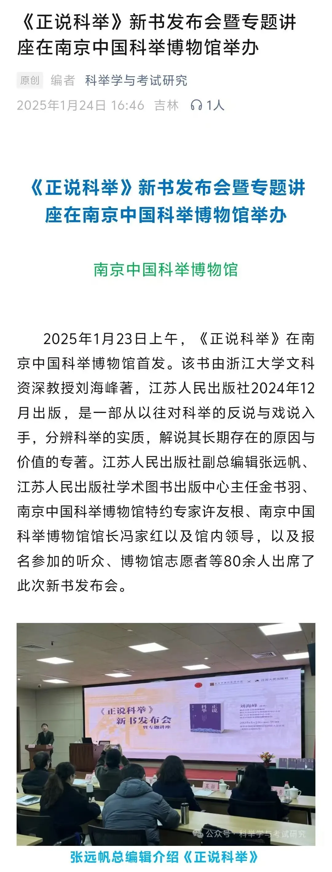 浙江大学科举学与考试研究中心主办的“科举学与考试研究”公众号是全国性的考试学术类公众号,用户数量约23000人,持续推送各类科举学与考试研究方面的文章,其中对科举博物馆学术交流活动推送达15次之多,拓宽科举传播路径。