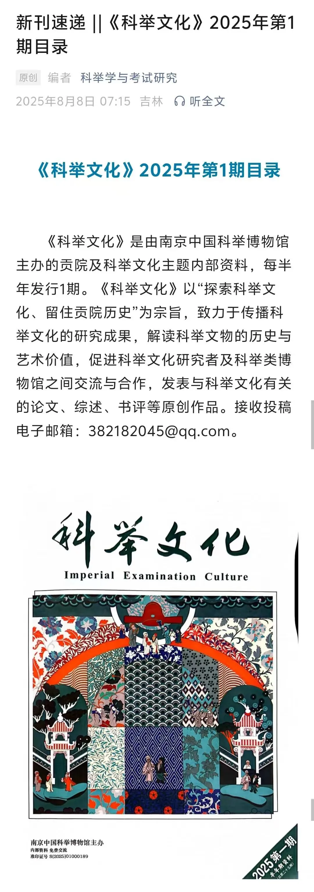 △“科举学与考试研究”公众号对博物馆研究工作的宣传推广
