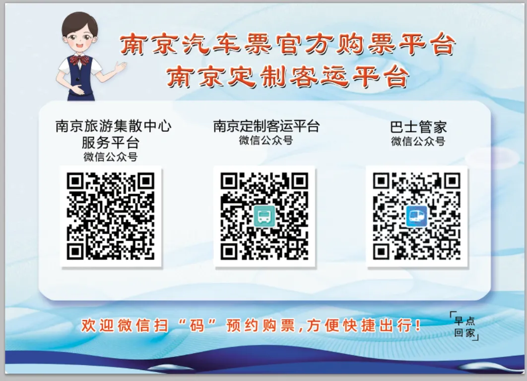 广大旅客可通过【南京旅游集散中心】【巴士管家】公众号查询班线信息并进行购票。