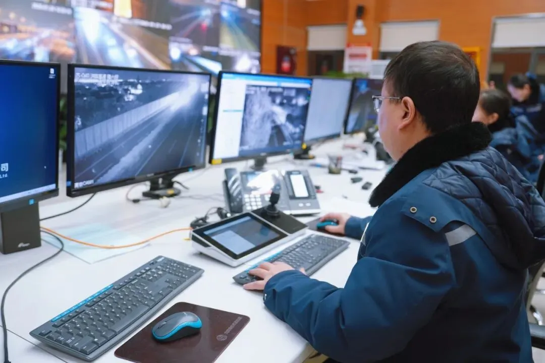 监控中心整合气象、路况、车辆位置等关键数据,实现精准调度。通过情报板、“大蓝鲸”等平台及时发布道路结冰预警和限速提示,引导车辆安全通行。