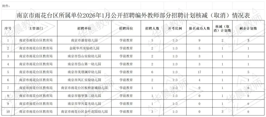 附件 南京市雨花台区所属单位2026年1月公开招聘编外教师部分招聘计划核减(取消)情况表.xlsx