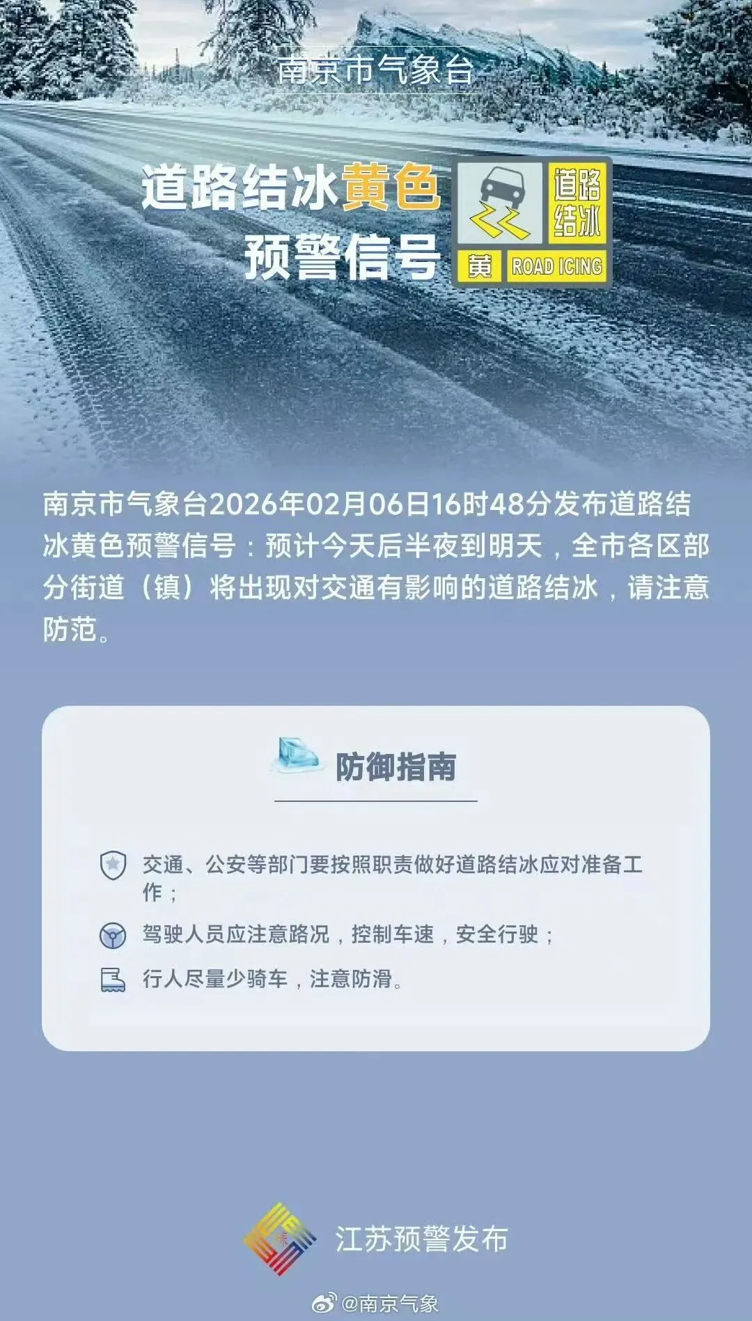 预计今天后半夜到明天,全市各区部分街道(镇)将出现对交通有影响的道路结冰,请注意防范。