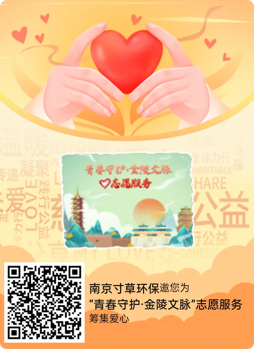 我们诚邀您共同支持和参与到文化遗产保护志愿服务行动的公益事业中来。扫描下方捐赠二维码即可为“青春守护·金陵文脉”志愿服务项目进行捐赠。