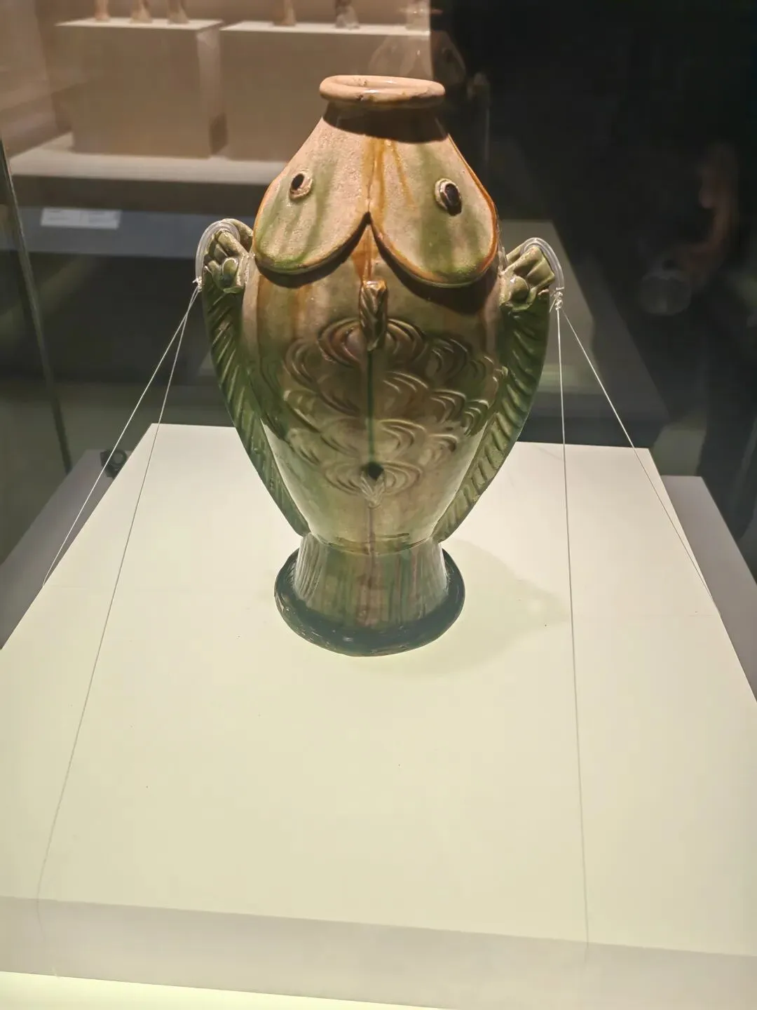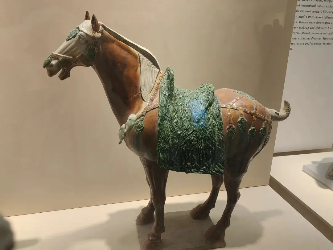 唐三彩骆驼、双鱼瓶等唐代文物。