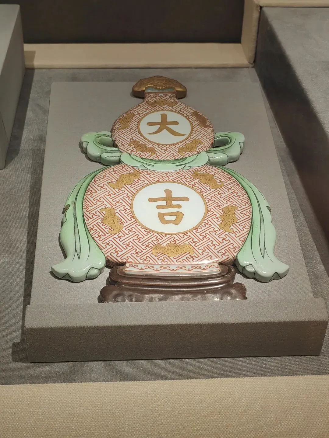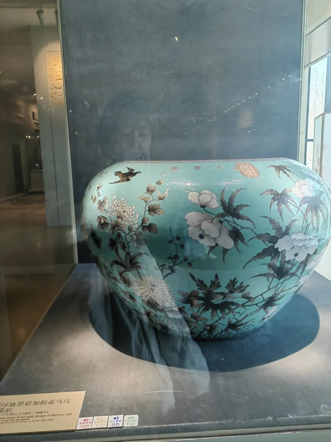 这样导致后面的展厅我们只能走马观花。特展馆9号展厅正在重新布展,我们失去近距离观看“芙蓉石蟠螭耳盖炉、金蝉玉叶”等镇院之宝的机会,相约下次。