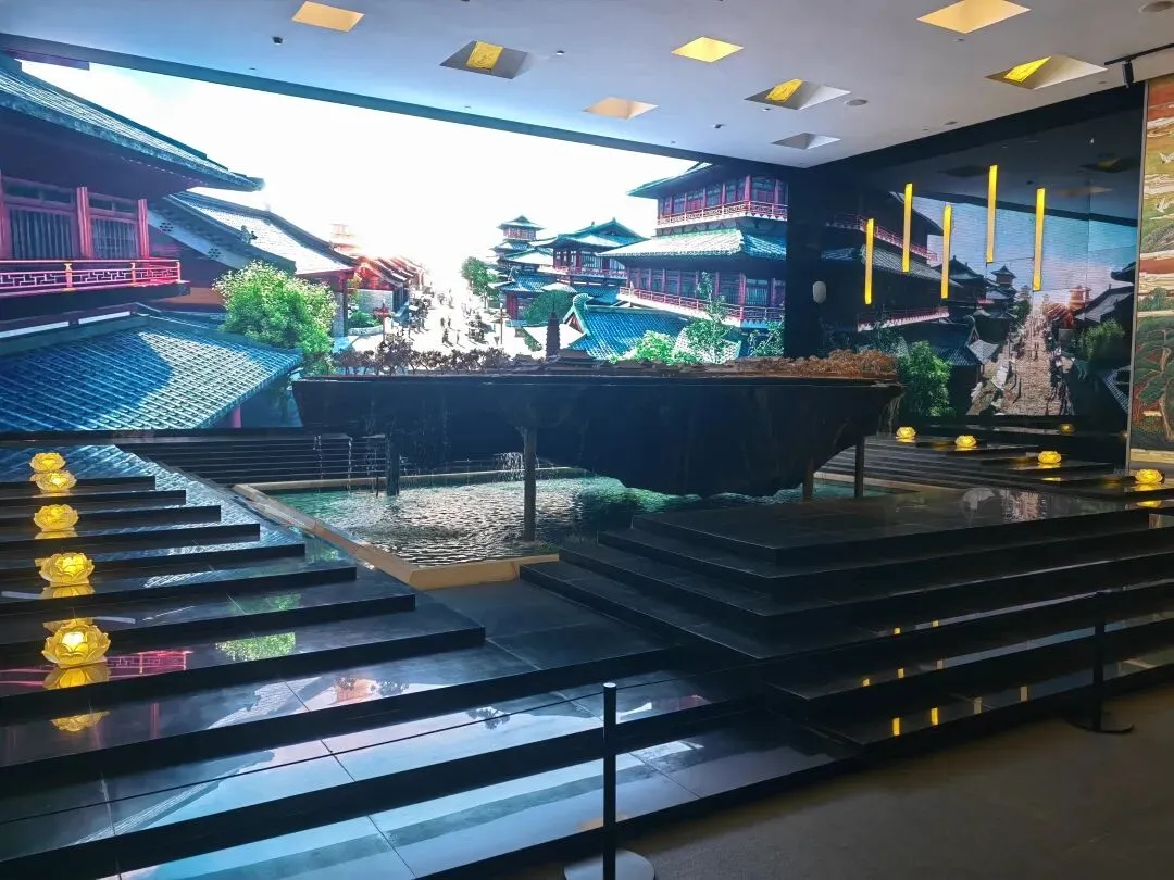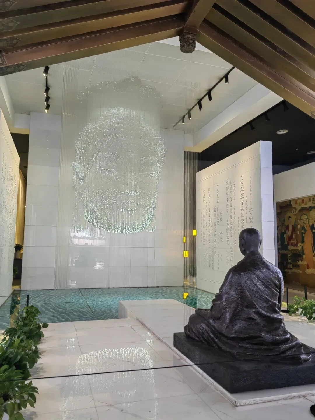 馆内的特色展陈空间有千年对望、舍利佛光展厅、藏经阁、菩提树。