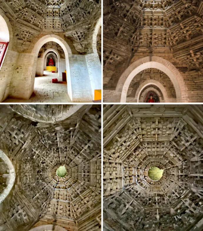 无梁殿殿内繁复的砖构藻井