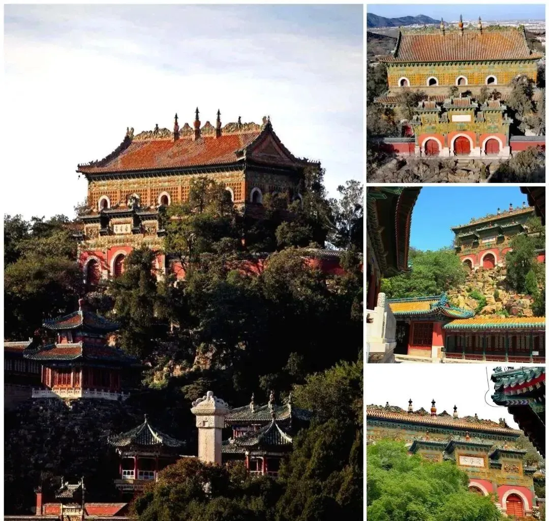 清代的无梁建筑亦不少见,仅以此处智慧海为代表。“智慧海”,本意是赞扬佛的智慧如海,佛法无边,其为颐和园最高处的一座佛殿建筑,始建于清乾隆年间。
