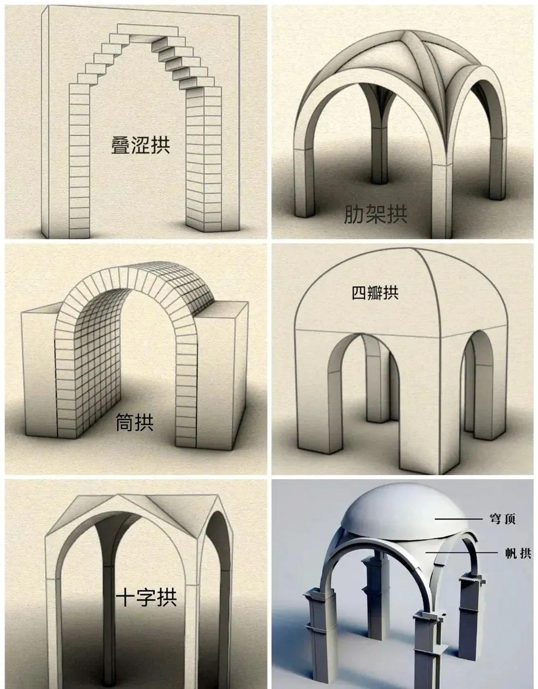 此类建筑体系在欧洲应用较为普遍,且技术发展极为成熟,但在中国古代至少在元代以前多数运用于暮祠牌坊、城垣建筑、宗教佛塔、建筑附属装饰等结构,极少运用于房屋主体建筑。