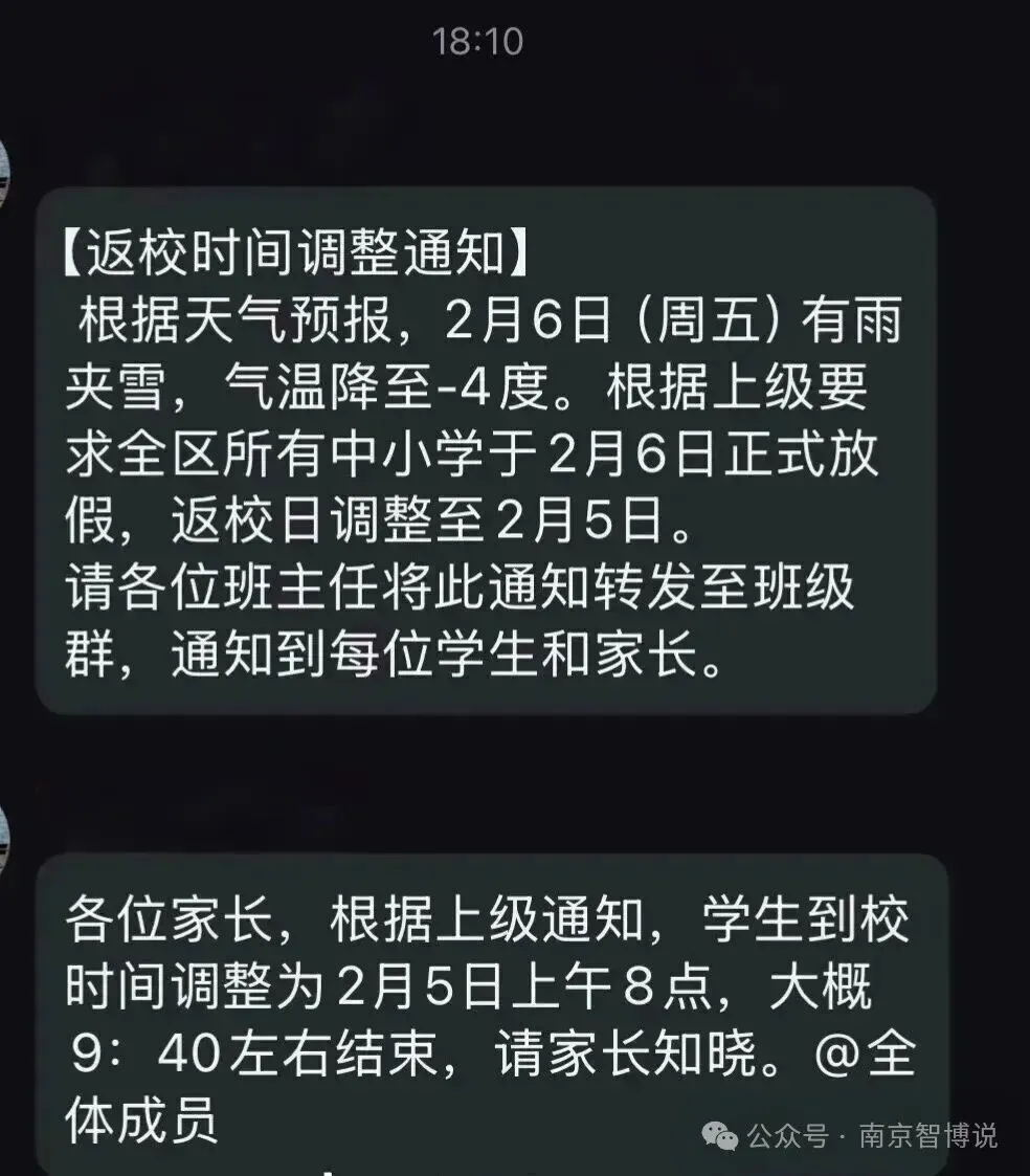 2026年2月4日8时53分,江苏省气象台发布寒潮蓝色预警,受强冷空气影响,预计5 - 7日省内多地会出现明显降温及大风天气。其中,南京、无锡等全省多地区48小时内最低气温将下降8 - 10℃,陆上风力达5 - 7级,江河湖库及近海海面风力达8 - 9级,风向为东北风。为应对此次寒潮,保障学生出行安全与身体健康,南京多个中小学发布通知,决定提前1天放假,让学生们能避开恶劣天气,安心居家。相关部门也提醒公众提前做好防范准备,以应对寒潮带来的不利影响。