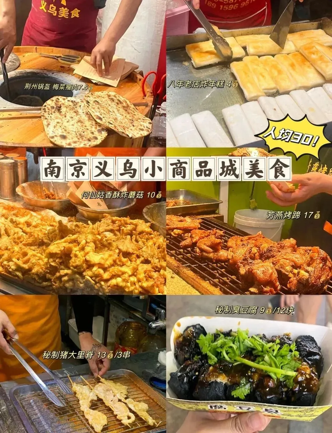 10.义乌美食街:南京义乌美食街位于南京市江宁区天元东路388号(南京义乌小商品城A区),人均消费约47元,是江宁区热门美食聚集地,以平价小吃和夜市氛围著称。