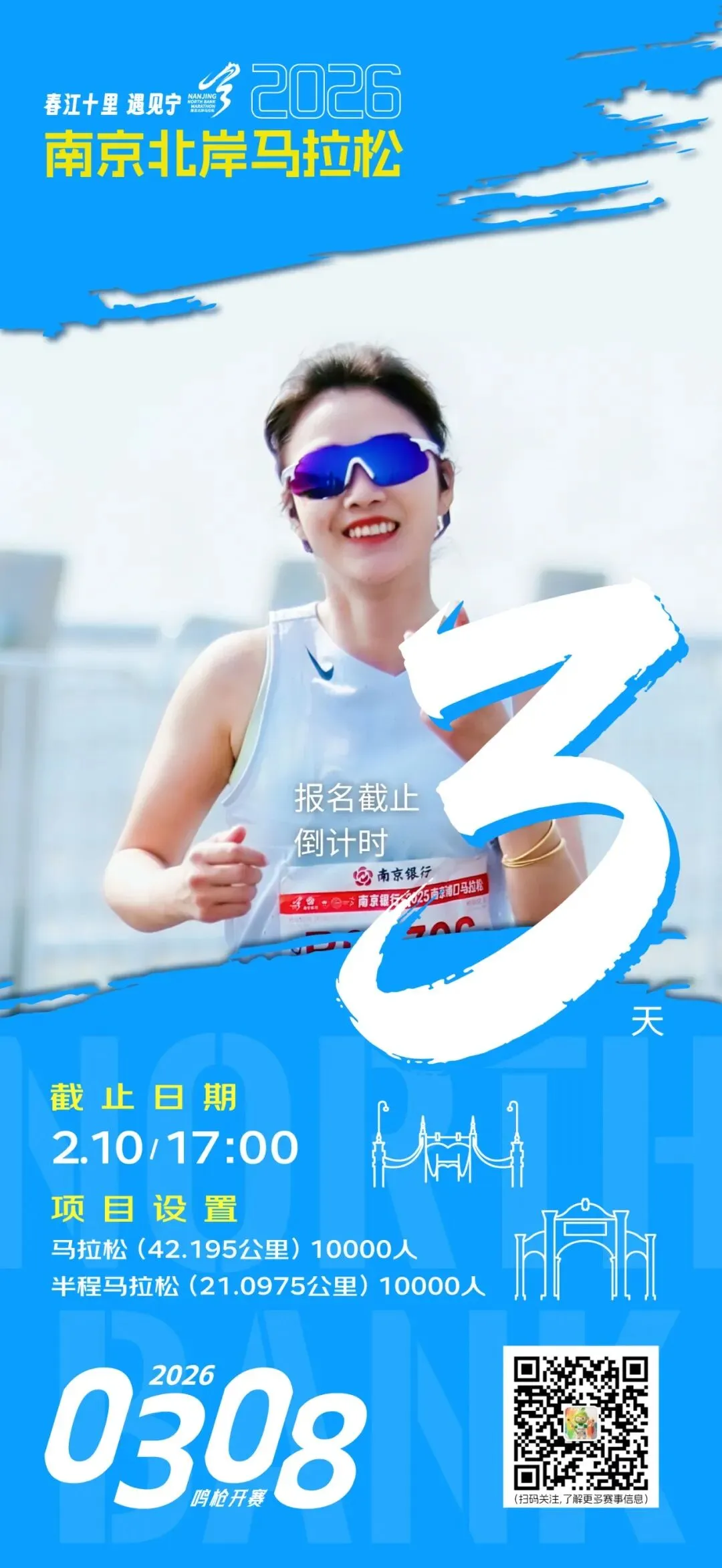 2026南京北岸马拉松报名截止倒计时3天⏰ 报名截止:2月10日(周二)17:00🎯项目设置:🏃 全程马拉松:10000人🏃 半程马拉松:10000人🌿 春日限定赛道,错过再等一年!🌸