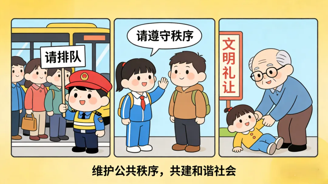 上下楼梯不拥挤不打闹。乘自动扶梯抓好扶手,留意前方,注意脚下。遇到人流拥挤要镇定,注意躲避,避免摔跤,不逆人流行走。