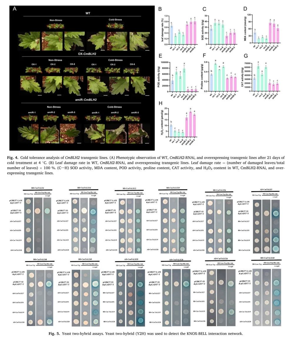 更关键的是,他们发现CmBLH2基因是抗寒 “主力”:把它过量表达,菊花的抗氧化酶活性会大幅提升,能有效清除低温产生的有害物质,叶片损伤率显著降低;反之,沉默这个基因,菊花就变得不耐寒。这就像给菊花装上了“抗寒防护罩”,通过激活这个基因,就能让菊花在低温环境中更好地存活。