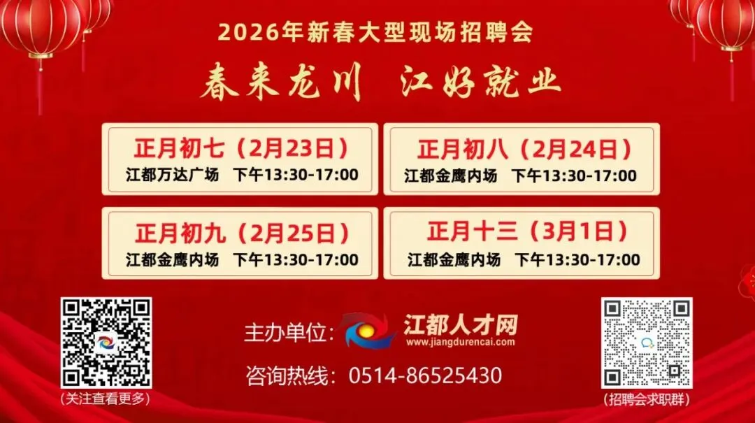 网站(www.jiangdurencai.com)、小程序、APP、微信公众号等名称均为江都人才网。关注“江都人才网”招聘求职更轻松!
