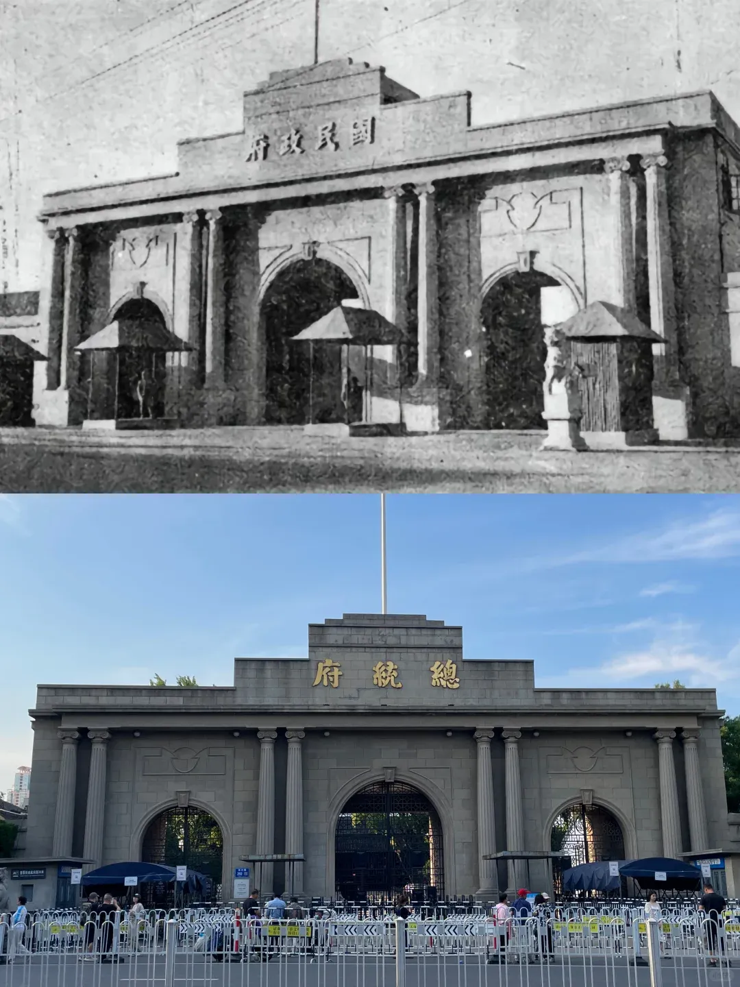 这座门楼建于一九二九年。三个月,近三万银元。最初悬着“国民政府”四字。直到一九四八年,蒋校长在此当选总统,才换上了“总统府”三字。