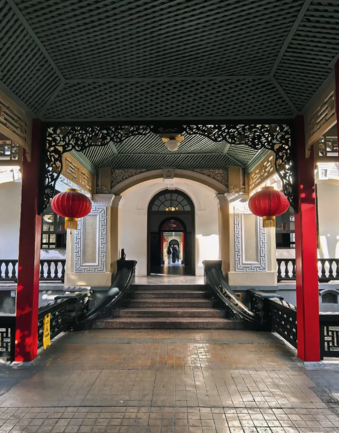 出大礼堂,回到中轴线,便是总统府内极重要的建筑——八字厅。左一撇,右一捺,寓意八方宾朋。五级台阶,象征五湖四海。