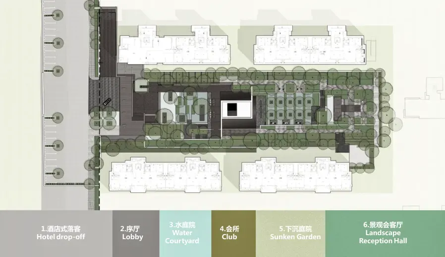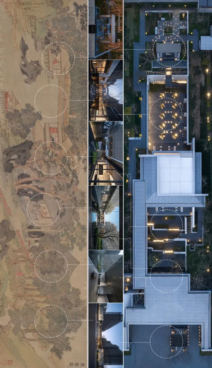 以“片”作为建筑、景观、室内整合后的设计语汇进行复合构成,既是作为空间的引导分隔、也是对于视线的界定要素。