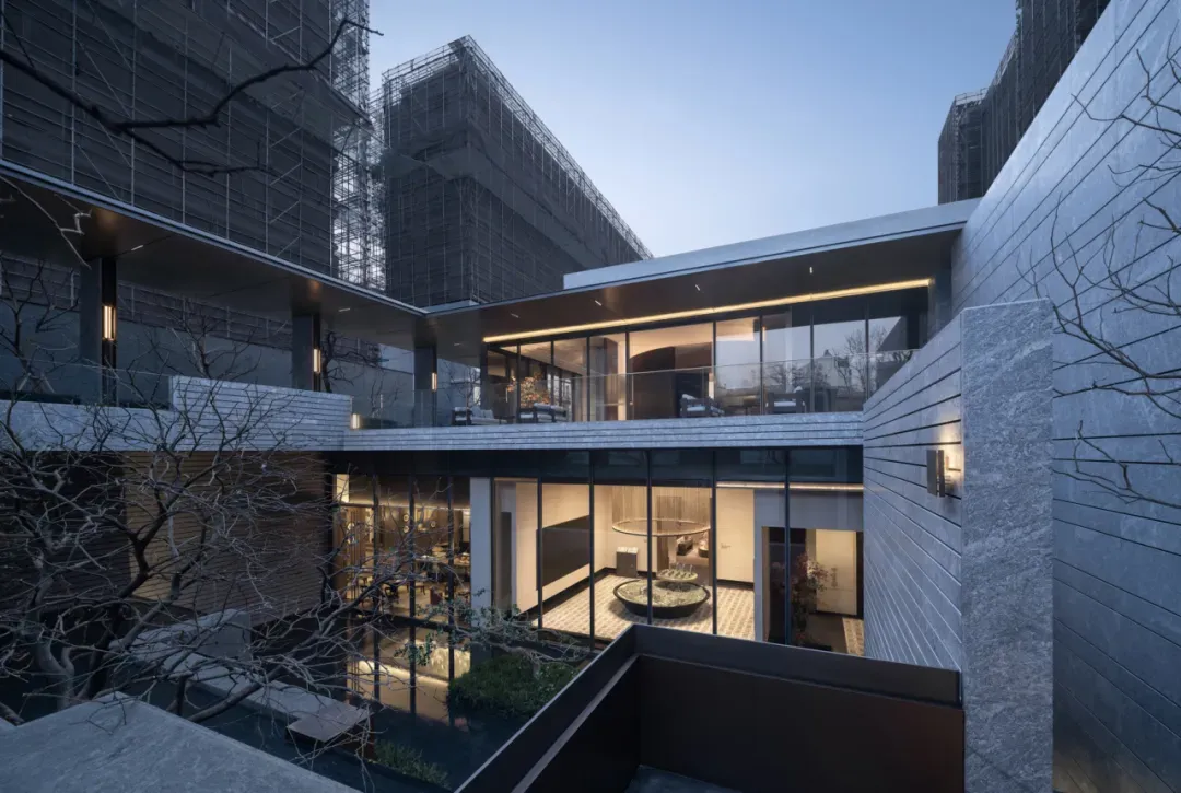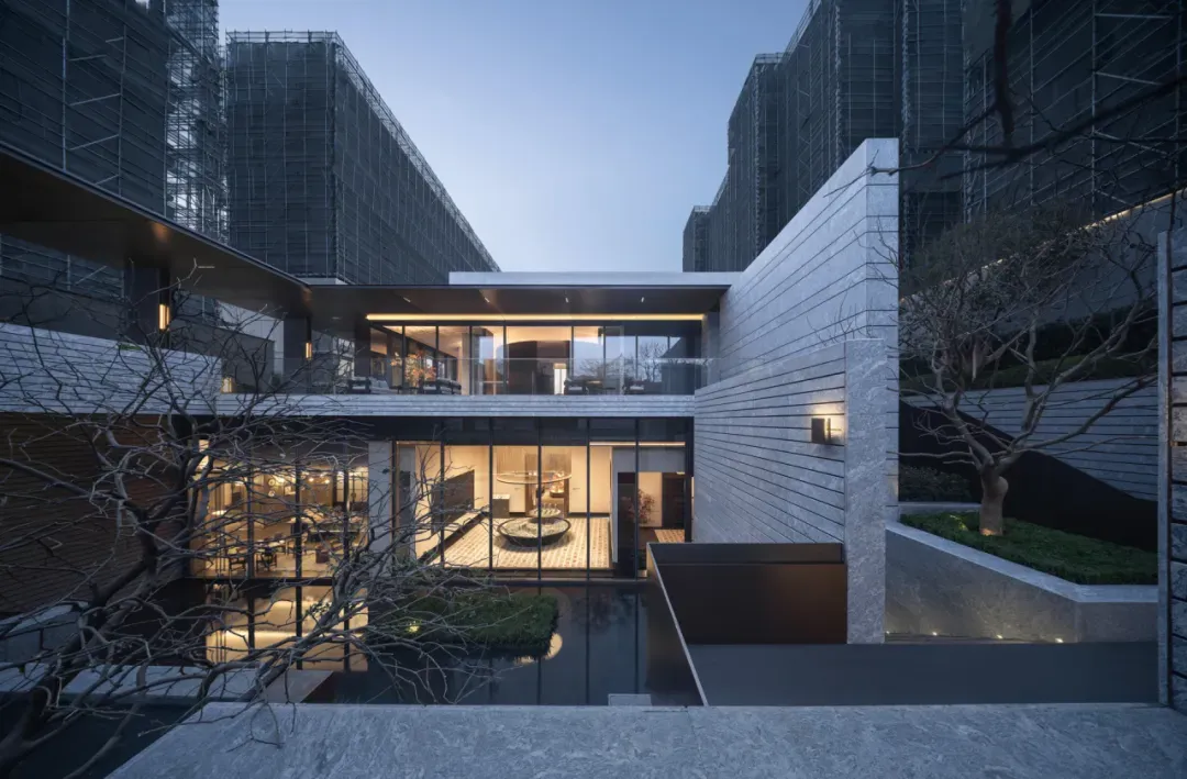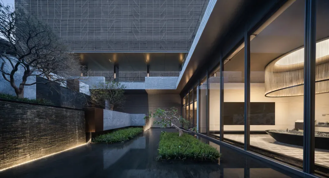 观云润府展示中心的构思与呈现,巧妙地融合了建筑、景观与室内,使三专业高度协同,共同缔造了一个生态系统般完整而独特的美学场域。