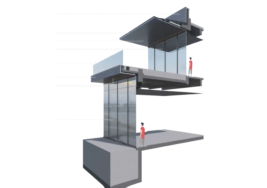 建筑与景观的对话关系是项目的重要关注。建筑线条既构成了外部造型,也是视线由内向外延伸的框景。在建筑与景观的交界面,我们尤为注重水平横向的视觉体验强化,使画面在目之所及之外动态延展,实现“无界观景”。