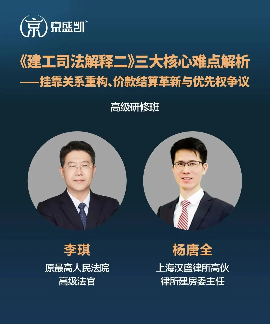 本课程由原最高人民法院高级法官李琪老师,与兼具工程与法律双背景的资深仲裁员律师杨唐全老师联袂主讲,紧扣征求意见稿核心条款,系统解析“挂靠”关系责任重构、固定总价合同结算、价款优先受偿权随债权转让等重大争议问题,致力于帮助法律实务者精准把握立法本意与未来裁判尺度,更新诉讼攻防策略。