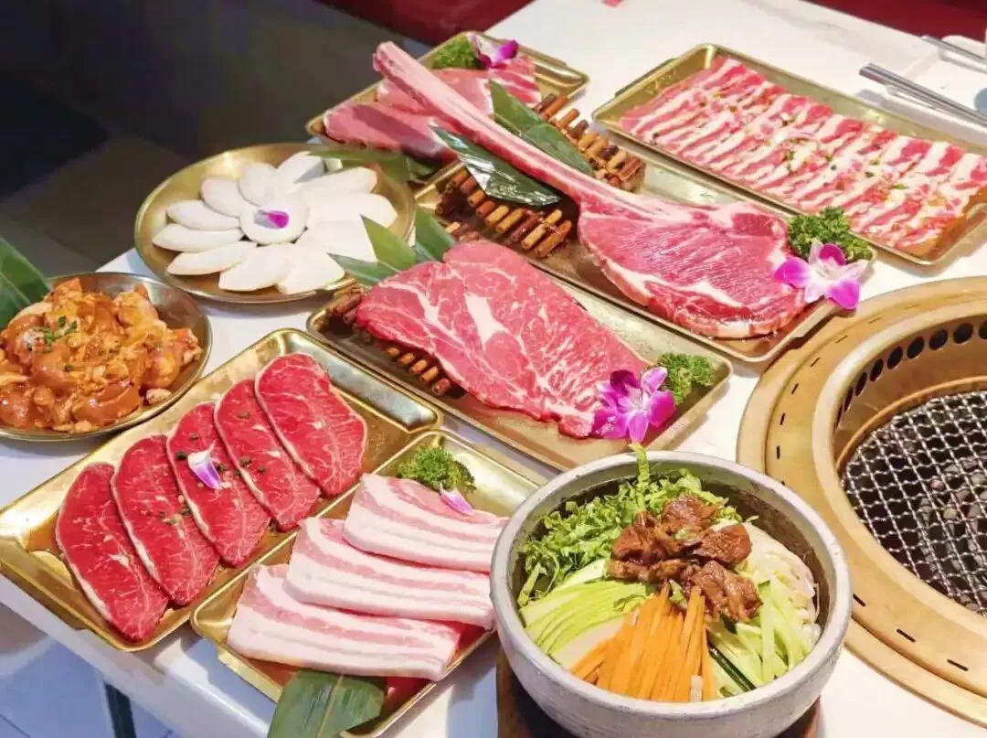 【炙烤·甄选肉类】谷饲黑牛后裙 1份 78元招牌牛大力 1份 68元雪花酪酪五花肉 1份 49元秘制鸡腿肉 1份 48元秘制猪排 1份 48元