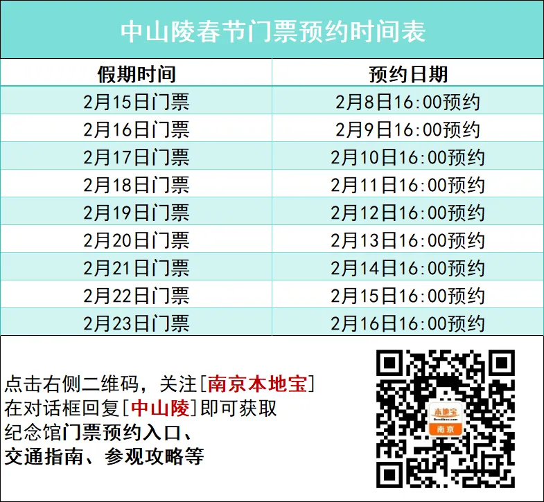 快捷预约入口:关注南京本地宝,后台对话框回复【中山陵】即可获取快捷预约入口、预约攻略以及参观攻略。
