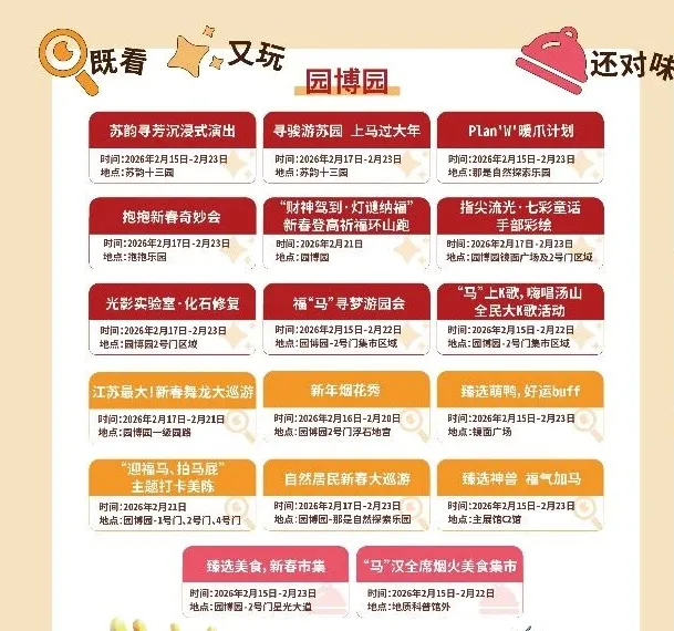 自驾:导航至“江苏园博园”,可选择1号门(西平门)、2号门(北安门)等入口,园区设有停车场。