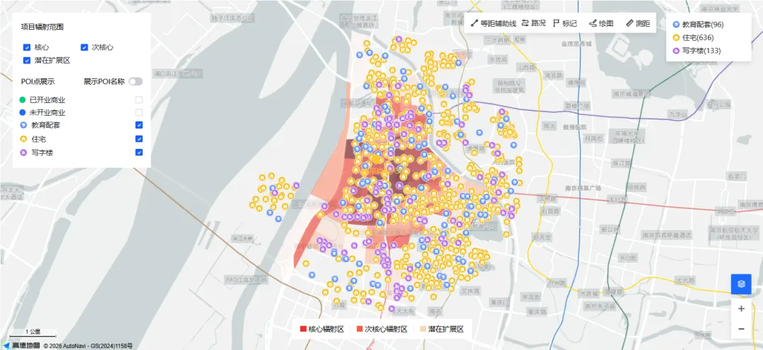 正所谓“南京教育看鼓楼,鼓楼教育看龙江。”龙江板块的独特价值远不止于此,透过赢商大数据辐射热力图可清晰看到,南京尚悦天地三公里范围内不仅集聚636个小区住宅以及133栋写字楼,更有着96家教育配套,其断档领先的教育资源,成就了片区独特的文化底蕴,并培育出一批教育素养极高的优质客群。