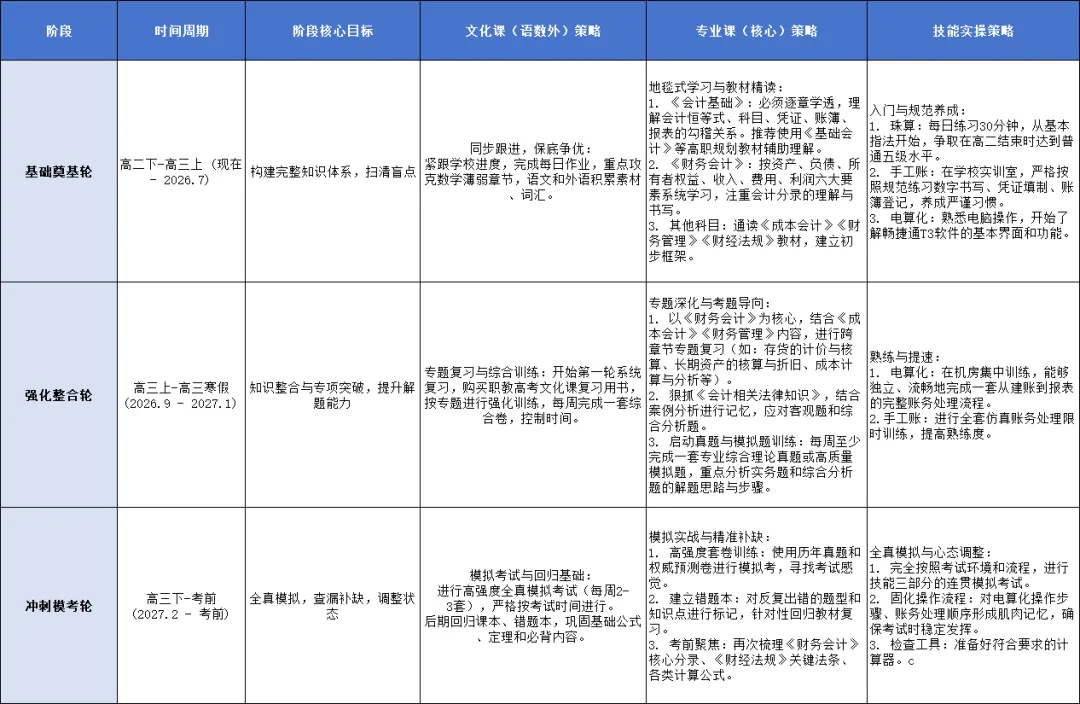身为江苏财会专业高二学子,你或许正在为2027年的职教高考感到迷茫:时间怎么安排?考什么?如何备考?别慌!作为深耕职教领域多年的资深咨询师,我为你量身打造了这份从此刻到考前的终极备考方案。这不仅仅是一份计划,更是一条通往心仪大学的清晰路径!
