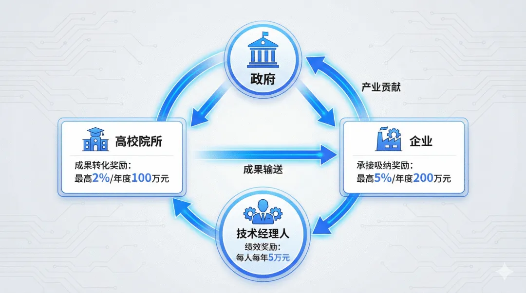 一是"双向激励"。不仅激励高校院所积极转化成果,也激励企业积极吸纳成果。这种双向激励,打破了"高校愿意转、企业不敢接"的僵局,形成了供给与需求的良性互动。