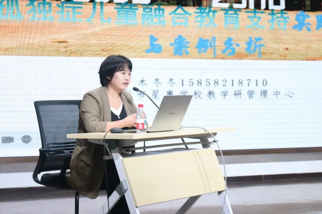 为更好赋能教师与家长,中心精准对接需求,组织开展两场教师培训及一场家长培训。10月16日,邀请苏州市星惠学校教学研管理中心木冬冬主任开展《孤独症儿童融合教育支持实践策略与案例分析》讲座。