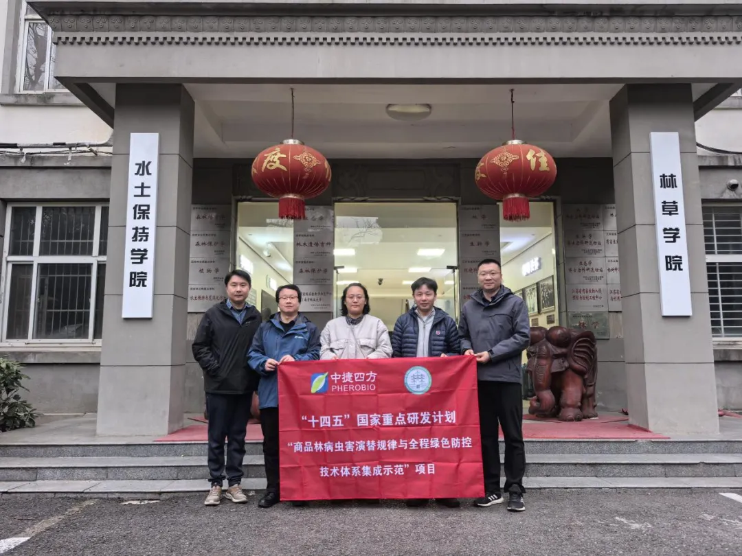 2026年2月5日,“十四五”国家重点研发计划“商品林病虫害演替规律与全程绿色防控技术体系集成示范”(2023YFD1401300)项目牵头单位中捷四方生物科技股份有限公司,由副总经理王琳带队,总工程师李拥虎等核心成员一行赴南京林业大学,开展子课题专项交流研讨。南京林业大学黄麟教授、樊奔教授、巨云为教授作为项目三个子课题负责人参加交流。此次交流旨在深化项目参与单位间的协作对接,推进研究任务落实与成果整合。交流活动首站聚焦实验室实地考察。中捷四方团队先后参观了南京林业大学在微生物组学、昆虫信息素、林木病理等领域的科研平台,深入了解该校在商品林病虫害绿色防控领域的科研设施、技术储备与实验进展。参观过程中,南林大团队详细介绍了各子课题的研究基础与阶段性成果,双方就微生物菌株筛选、信息素配方优化等技术细节展开实时交流。中捷四方团队对南林大扎实的科研功底与先进的实验条件给予高度认可,为后续技术协同攻关奠定了坚实基础。在项目专项研讨环节,双方聚焦课题指标细化、技术路线优化及协同工作机制等核心问题展开深入讨论。针对项目关键考核指标,双方逐一拆解任务节点,明确量化标准,尤其对“减药增效”与“绿色防控”两大核心目标,达成统一的量化评估标准。同时,双方结合各自优势,对现有技术路线进行优化调整,确定了“科研攻关+产业落地”双轮驱动的推进策略,进一步理顺跨单位协作流程,破解课题推进中的衔接堵点。成果转化交流环节成为本次研讨的重点。双方围绕生物制剂、高效昆虫信息素等多项创新技术,深入探讨产业化路径。针对技术成果的市场应用场景、产品注册流程及规模化生产等关键问题,交换具体实施方案。此外,双方就知识产权共享、联合开发等合作机制交换了意见,明确将以项目为纽带,构建“基础研究-技术研发-产业应用”的全链条协作模式,推动更多实验室成果转化为田间地头的实用技术。本次专项交流,精准对接了中捷四方与南京林业大学在项目子课题层面的协作需求,进一步厘清了具体研究任务的推进方向与工作路径。通过面对面的务实沟通,双方强化了产学研协同创新的联动机制,有效破解了部分跨单位协作的衔接难题,为相关子课题的顺利推进及成果高质量集成奠定了坚实基础。