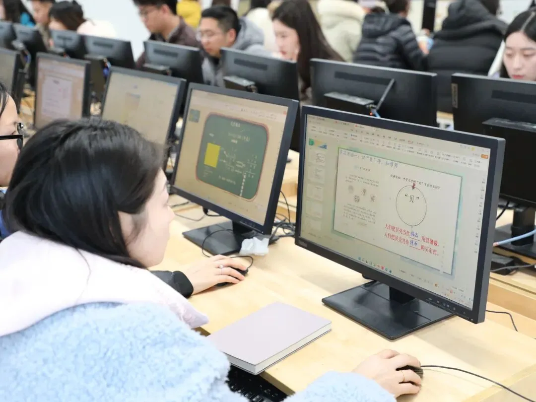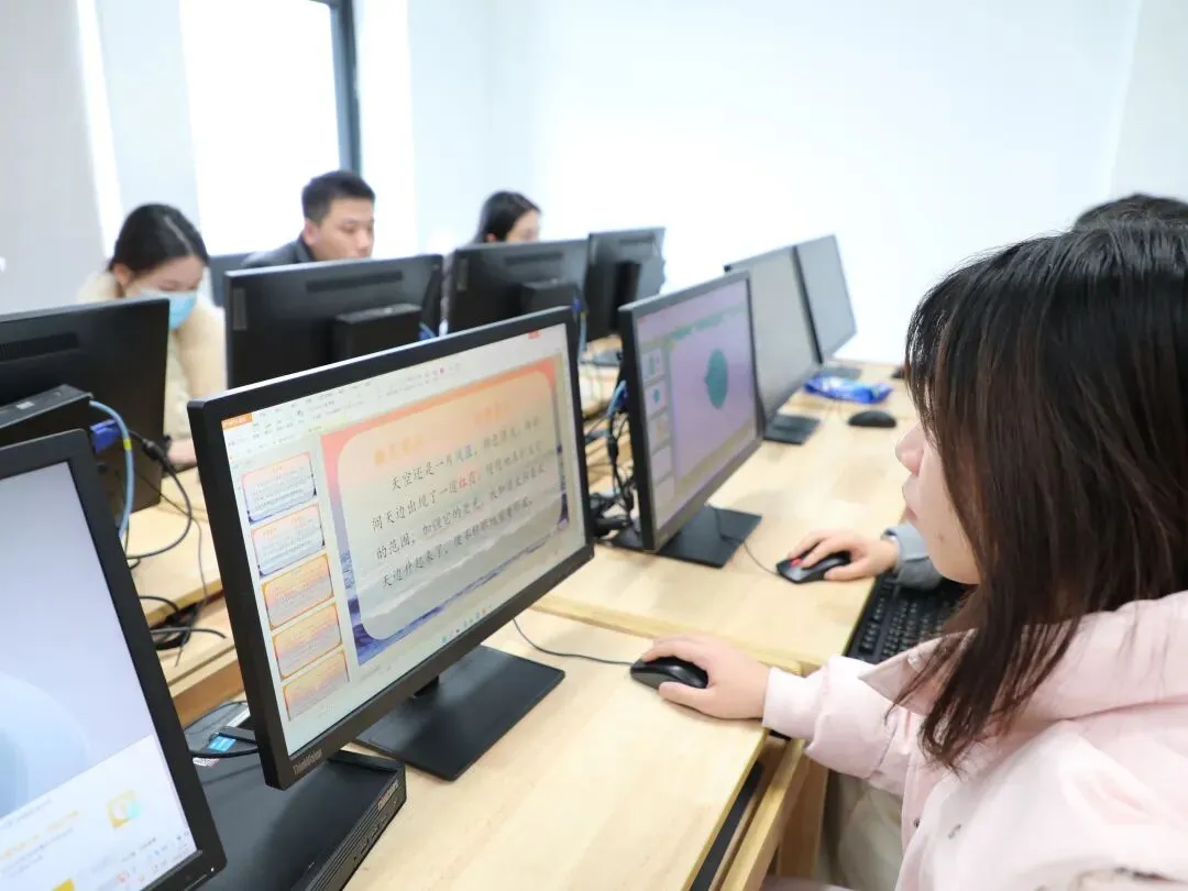 教育匠心,始于方寸间的精雕细琢。本次大赛第二环节为课件制作,参赛教师需在规定时间内,融合我校“童向课堂”理念完成课件设计。比赛现场,语文、数学、英语、综合四个学科组的青年教师凝神屏息、指尖飞动,或甄选图文呈现文字意境,或设计动画演示数理逻辑,或剪辑音视频营造语言情境,或整合素材打破学科壁垒。90分钟限时制作,机房内唯有鼠标轻点、键盘敲击,以专注诠释专业,用匠心孕育生机。