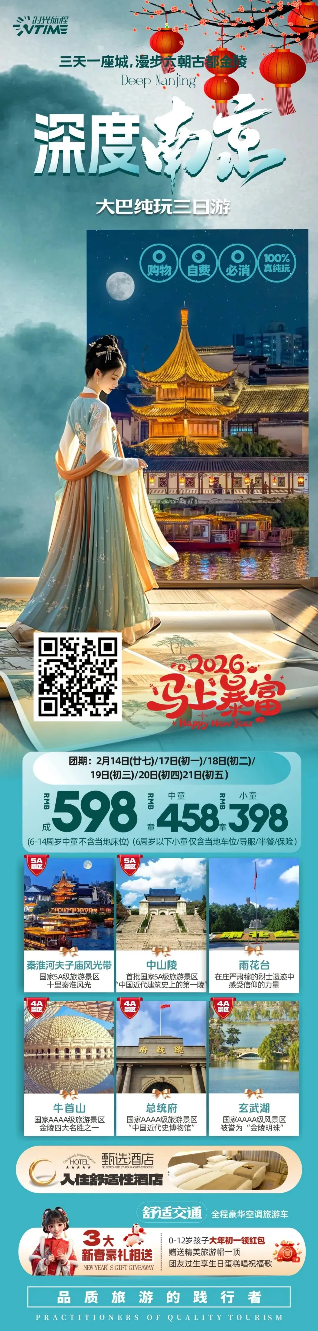2026【深度南京】南京纯玩大巴3日游 0购物0自费0必消 100%真纯玩 独家可自由行