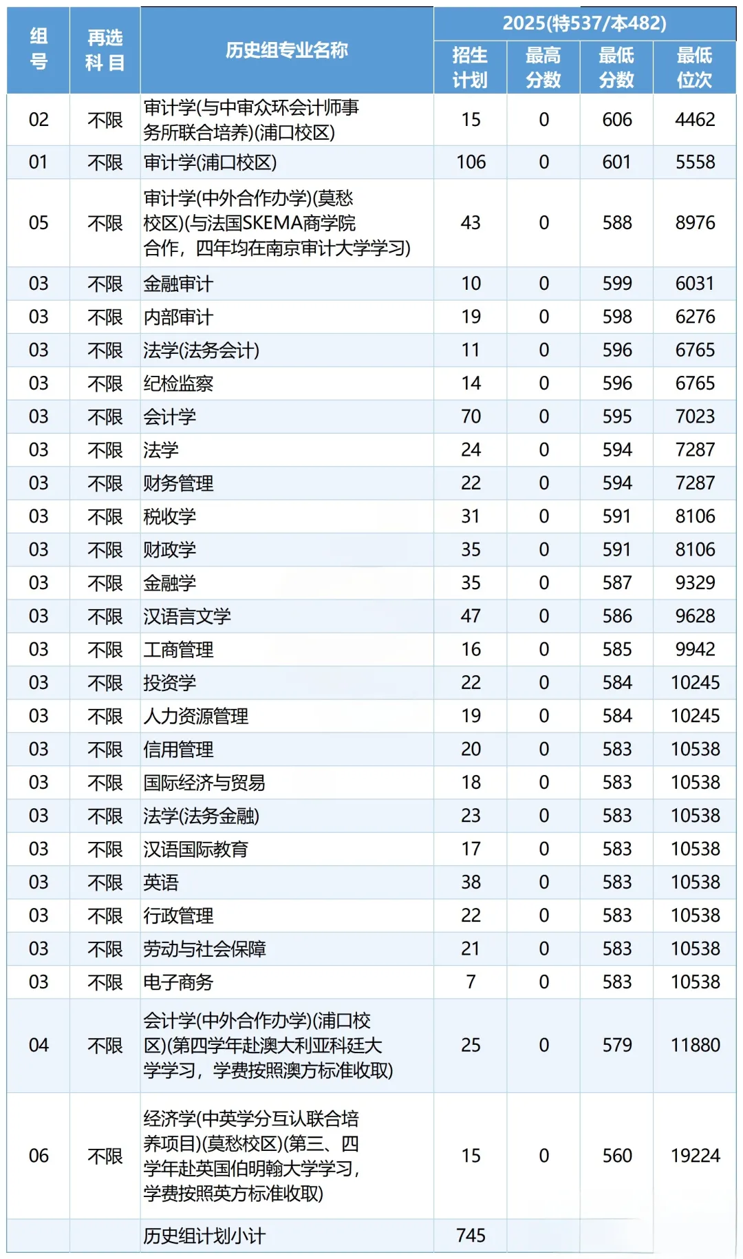 历史类最高:606分——审计学(与中审众环会计师事务所联合培养)(浦口校区)