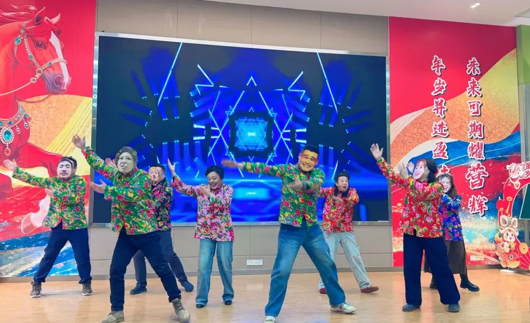 中心组的东北八人转作为压轴节目,将联欢会的欢乐气氛推向顶峰,趣味十足的表演让全场笑声不停。
