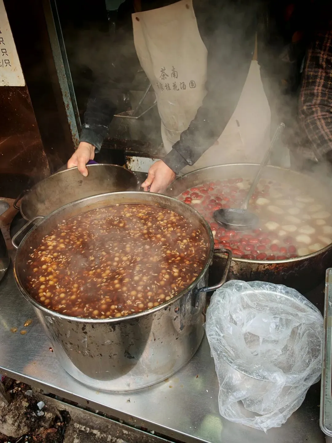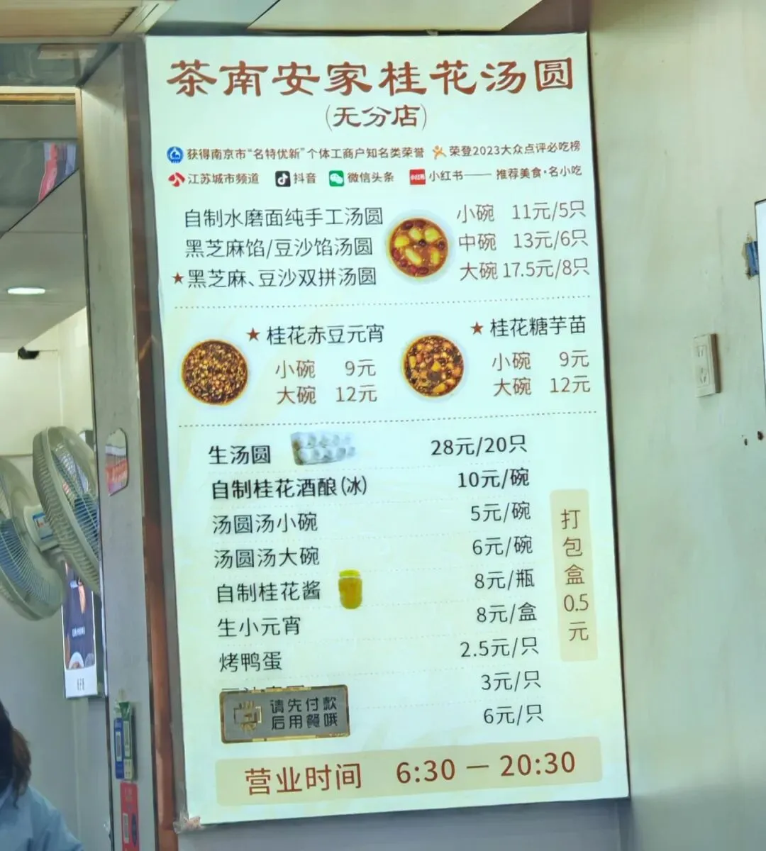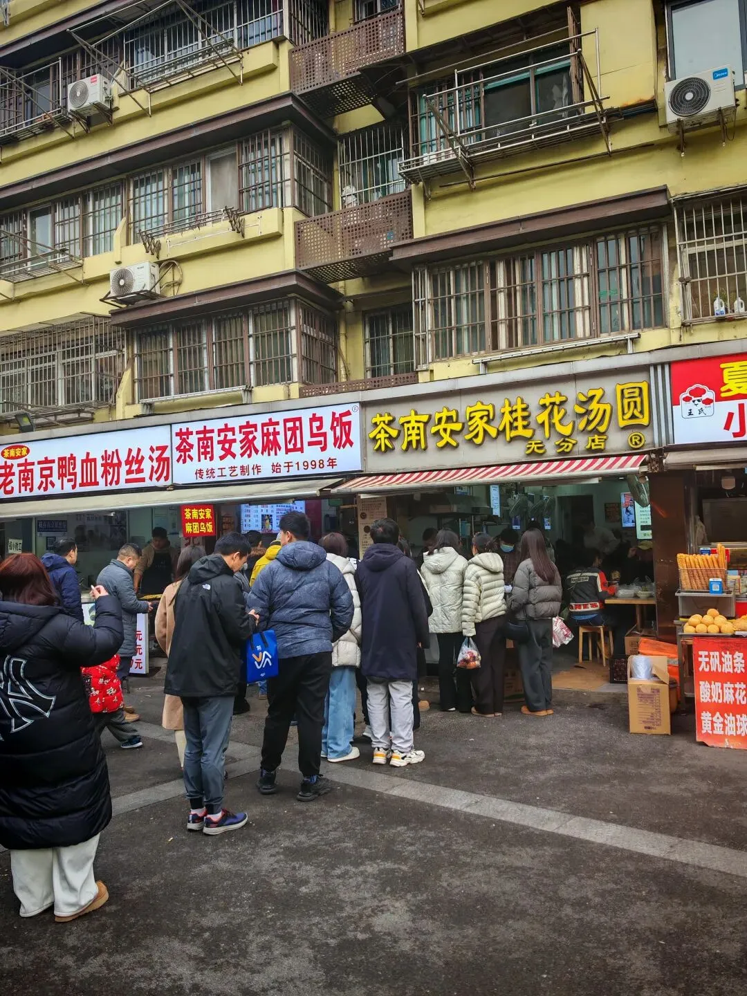 今天早上,也不说早上吧,上午这个早饭已过午饭未到的时间来茶南这一片吃饭,本来来这里吃饭之前我是和往常的思路一样选定了几家特别有名的店的。这些店有名到即使我18年在这里的时候也很有名,已经火了很多年了,只不过当时的人数跟现在比肯定是少的,因为当时我不管是吃哪家店完全没排过太长的队。不过来到这里之后,我觉得往常的思路并不适用于所有时候,尤其是这次。有名的店照样需要排队,不管什么时候来都是排队的,像这个茶南安家桂花汤圆。