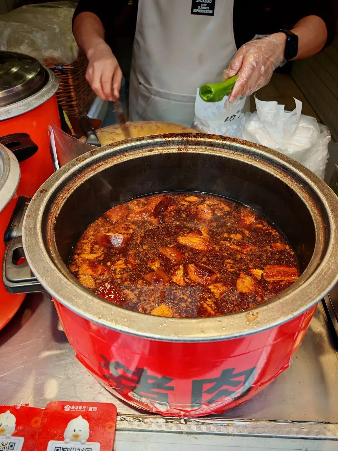 11块钱一个,价格也还行。主要是在摊位面前炖着一大锅肉,这个太诱人了,也很有老式的风格。老板特别热心,态度很好。