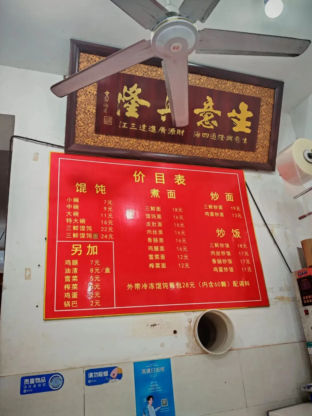 这家馄饨馆名字我有印象,以前绝对吃过,也是开了有很长时间了。店里很明亮朴素,有几张桌子,居民小馆,特别受欢迎。价目表相当简单明了,只做馄饨,面和饭几种。