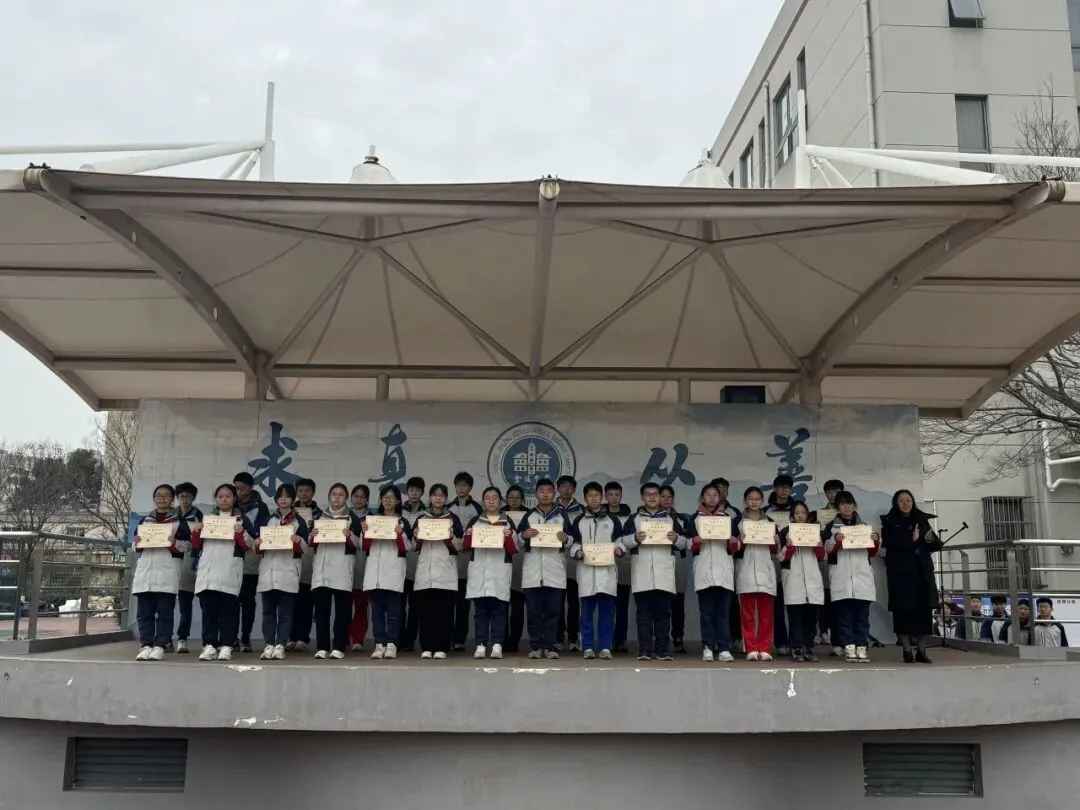 为总结学期成果、表彰先进典型,同时做好假期安全教育,南京市金陵中学岱山分校于2026年2月5日下午隆重举行2025-2026学年第一学期结业仪式。全校师生齐聚足球场,共同为充实的学期画上圆满句号。