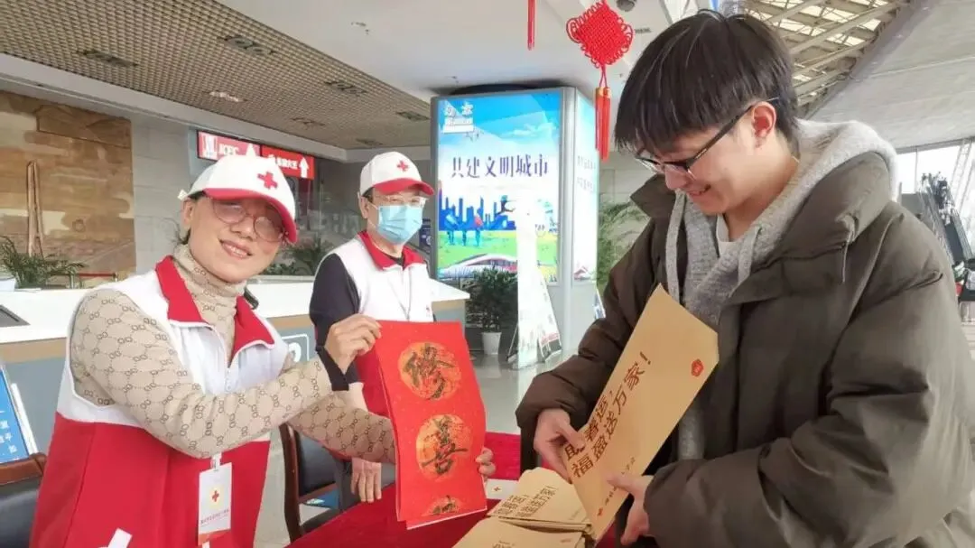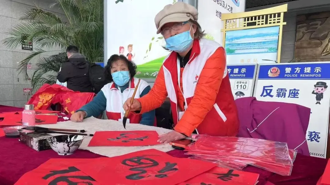 在车站送福字和春联
