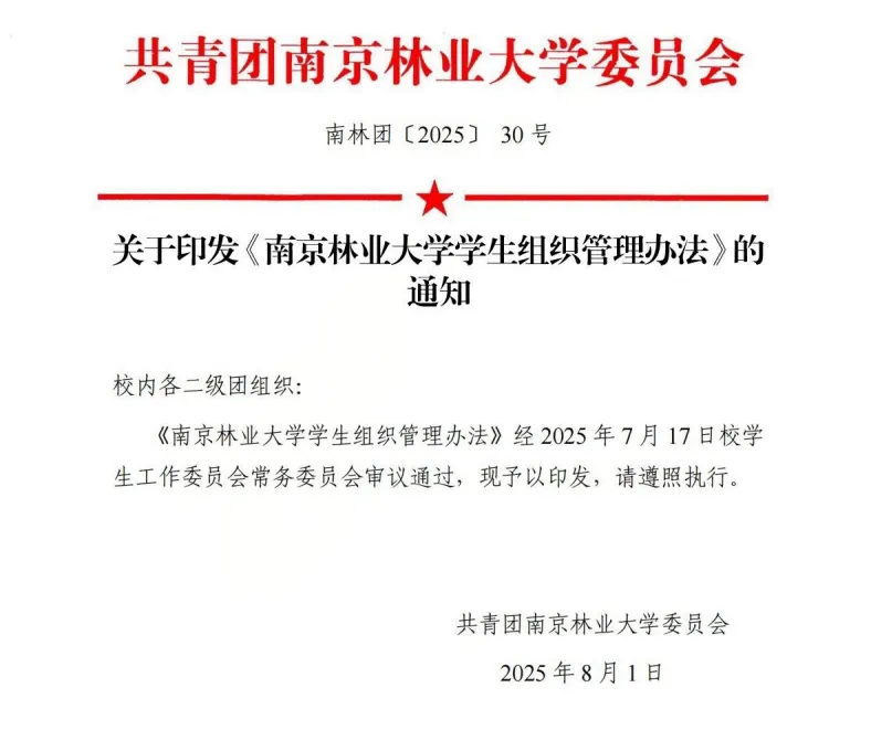 修订印发《南京林业大学学生组织管理办法》
