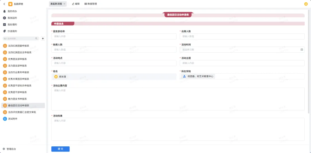 “五四评比”线上申报操作平台