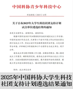 学校成功入选中国科协大学生科技社团支持计划首批试点高校(江苏仅10所),为科创社团发展注入强劲动力。