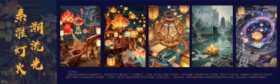 “艺启AI·智绘未来”第一届江苏省大学生人工智能艺术创作大赛最受观众喜爱的TOP20作品《秦淮灯彩溯流光》