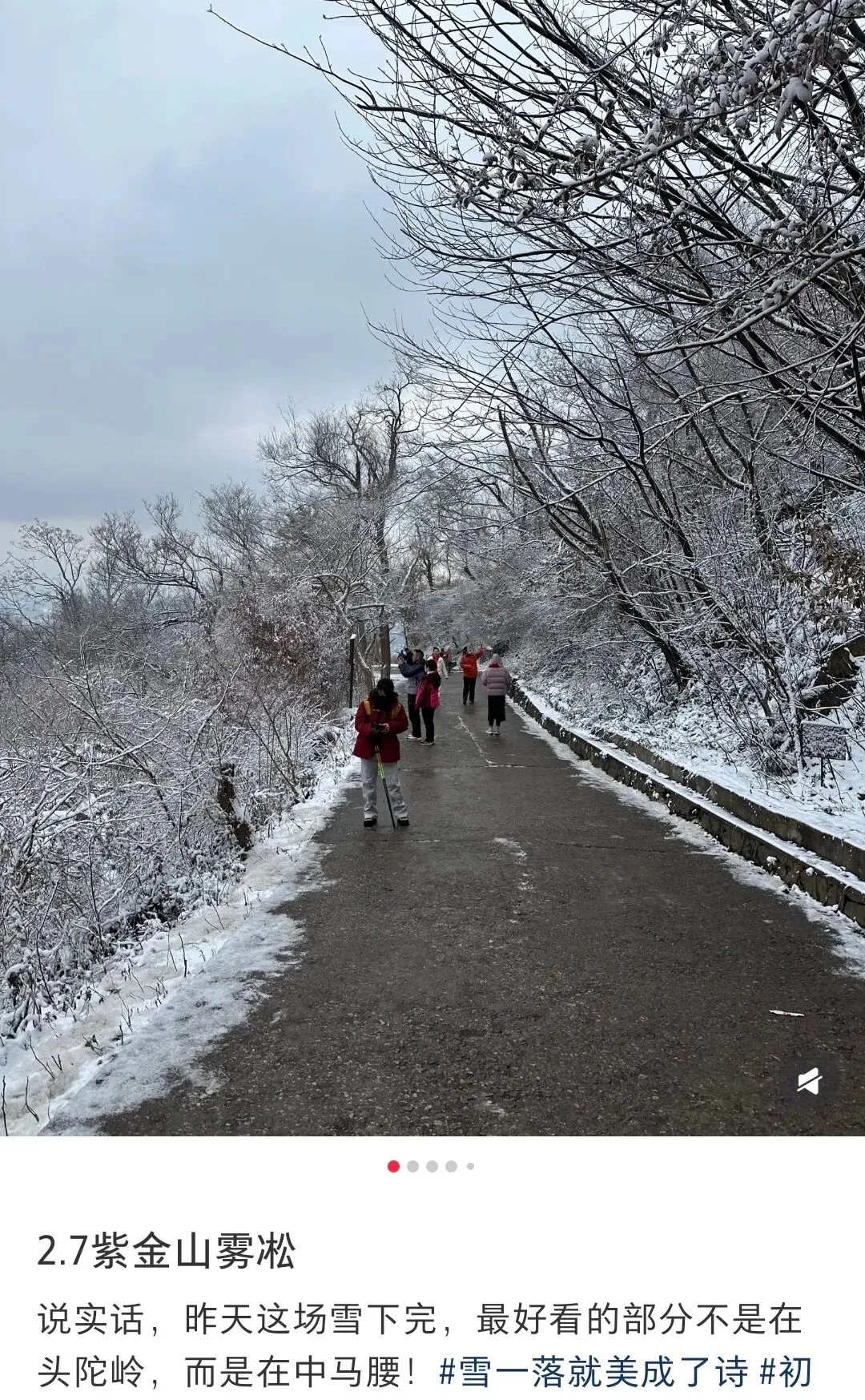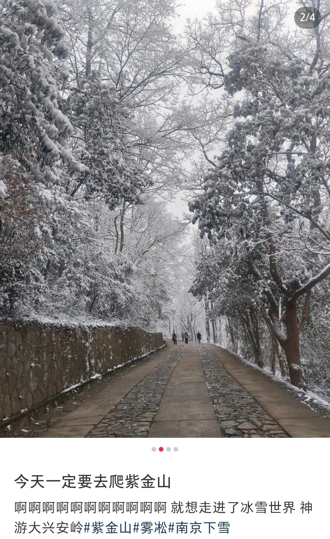 “今天去爬紫金山 走进了冰雪世界”